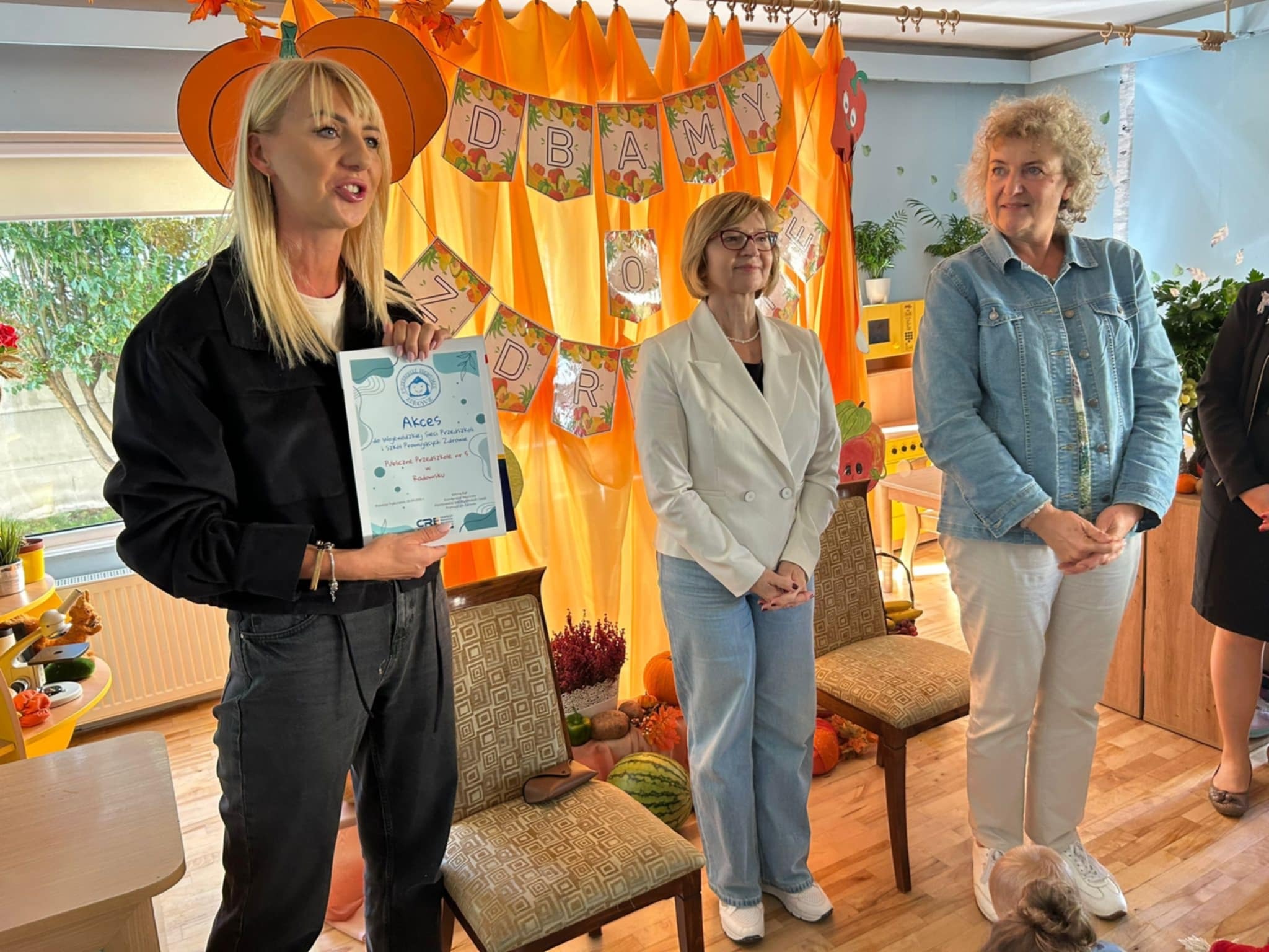 W dniu 25 września 2025 r. kolejna placówka otrzymała Akces Wojewódzkiej Sieci Przedszkoli i Szkół Promujących Zdrowie - to Przedszkole Samorządowe nr 5 w Radomsku, które odwiedzili nauczyciele konsultanci CRE WŁ w Piotrkowie Tryb. Aldona Bąk - koordynator rejonowej sieci Przedszkoli i Szkół Promujących Zdrowie i Wiesława Kubicka. Wręczenie Akcesu odbyło się z udziałem wszystkich dzieci, nauczycieli i pracowników przedszkola.
