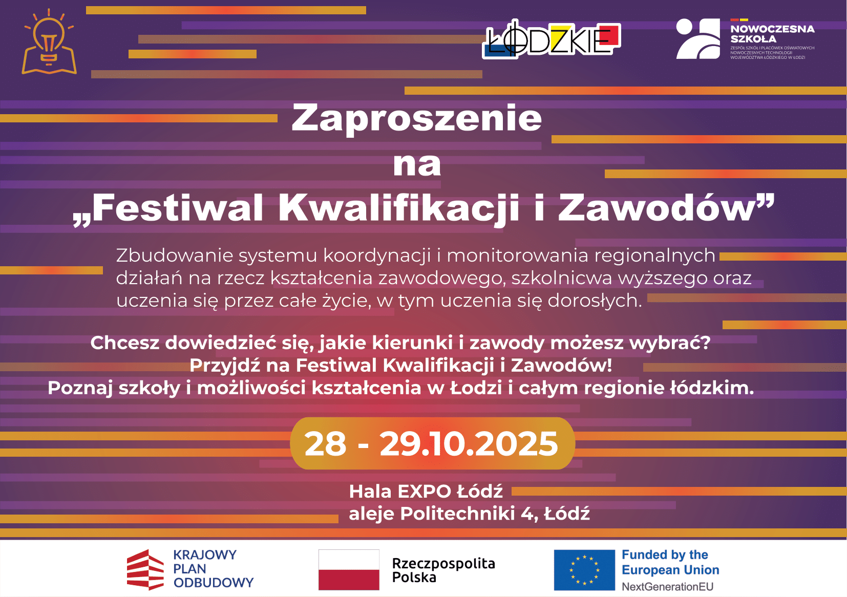 Centrum Rozwoju Edukacji Województwa Łódzkiego w Piotrkowie Trybunalskim wzięło udział w pierwszym dniu Festiwalu Kwalifikacji i Zawodów, który odbył się 28 października 2025 roku w Hali Expo w Łodzi. Wydarzenie zgromadziło uczniów klas 7–8 szkół podstawowych oraz pierwszych klas szkół ponadpodstawowych, dając im możliwość poznania różnych ścieżek kariery i zawodów przyszłości.